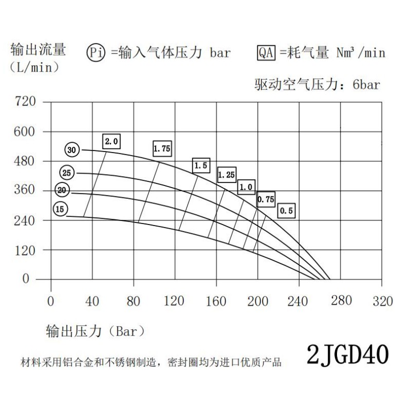 嘉力:技術(shù)參數(shù)                      Pa=驅(qū)動氣壓    Pi=輸入壓力    Po=輸出壓力    (單位:bar)