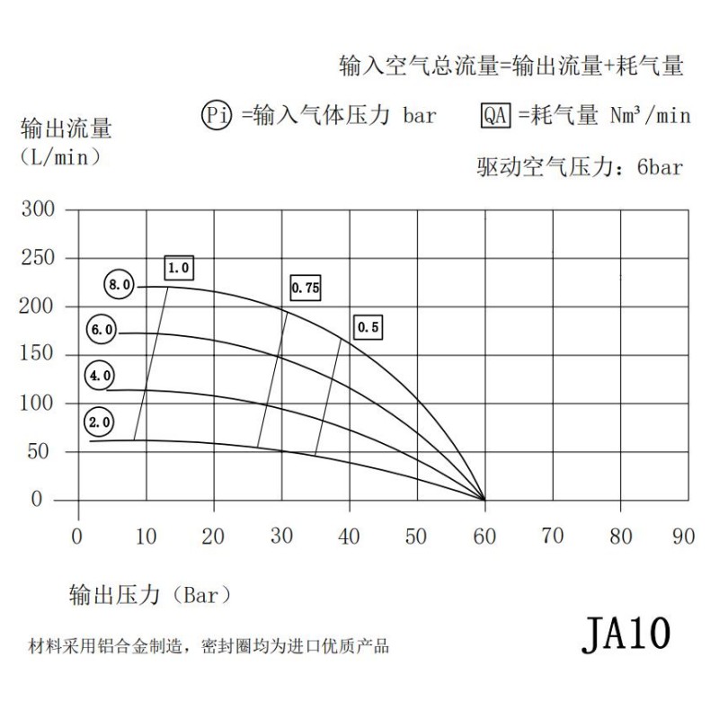 嘉力:技術(shù)參數(shù) Pa=驅(qū)動(dòng)氣壓 Pi=輸入壓力 Po=輸出壓力 (單位:bar) |