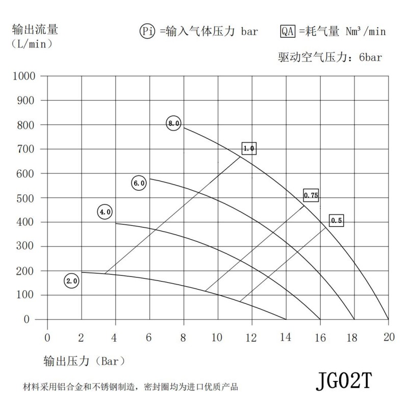 嘉力:技術(shù)參數(shù) Pa=驅(qū)動(dòng)氣壓 Pi=輸入壓力 Po=輸出壓力 (單位:bar) |