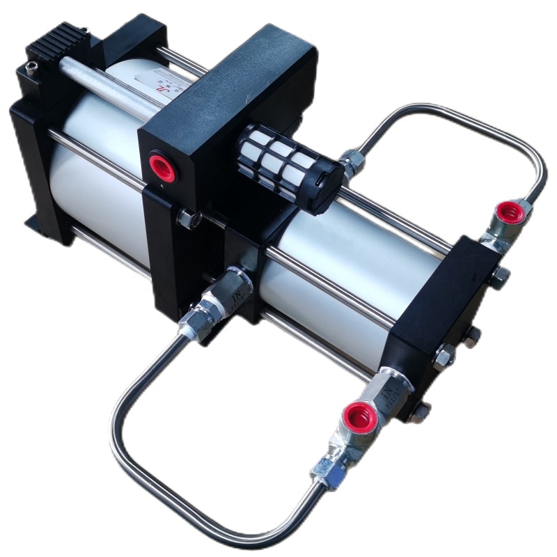 JG系列氣體增壓泵是通用型氣氣增壓泵,屬于單頭型增壓泵。在具備被增壓介質(zhì)初始?xì)鈮狠^高的條件下,主要應(yīng)用于只要求輸出氣壓高,而不要求輸出氣壓流量的各種場(chǎng)合。最高輸出氣壓壓力可達(dá)1000公斤,可對(duì)各類氣體進(jìn)行增壓,如常用的氮?dú)?、空氣、二氧化碳、氧氣、氫氣及各種惰性或稀有氣體。采用普通壓縮空氣進(jìn)行驅(qū)動(dòng),驅(qū)動(dòng)部分為免潤(rùn)滑,并且高壓缸頭均自帶冷卻系統(tǒng),以防高壓帶來的高溫影響。