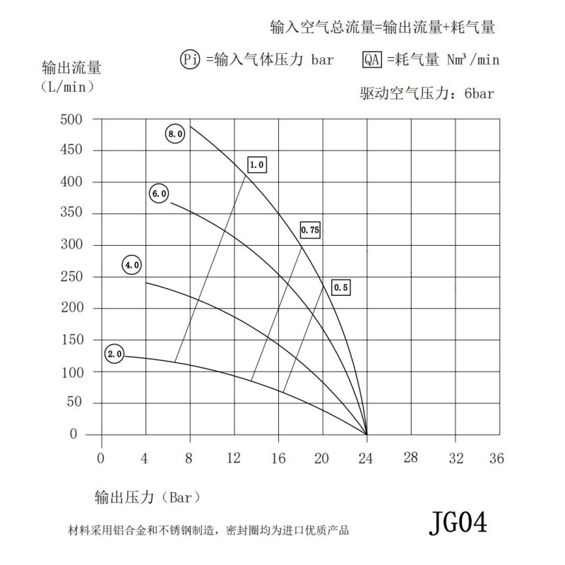 嘉力:技術(shù)參數(shù)                      Pa=驅(qū)動氣壓    Pi=輸入壓力    Po=輸出壓力    (單位:bar)