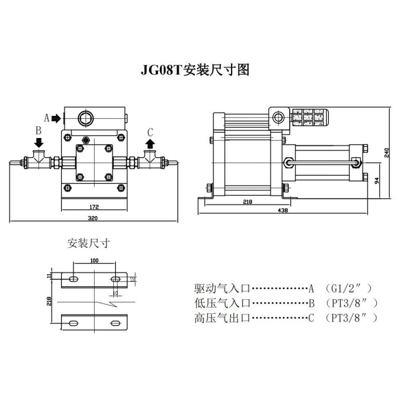 JG08T | 8:1 | 4.4 | 7Pa+Pi | G1/2" | PT3/8" | PT3/8" | 482 |