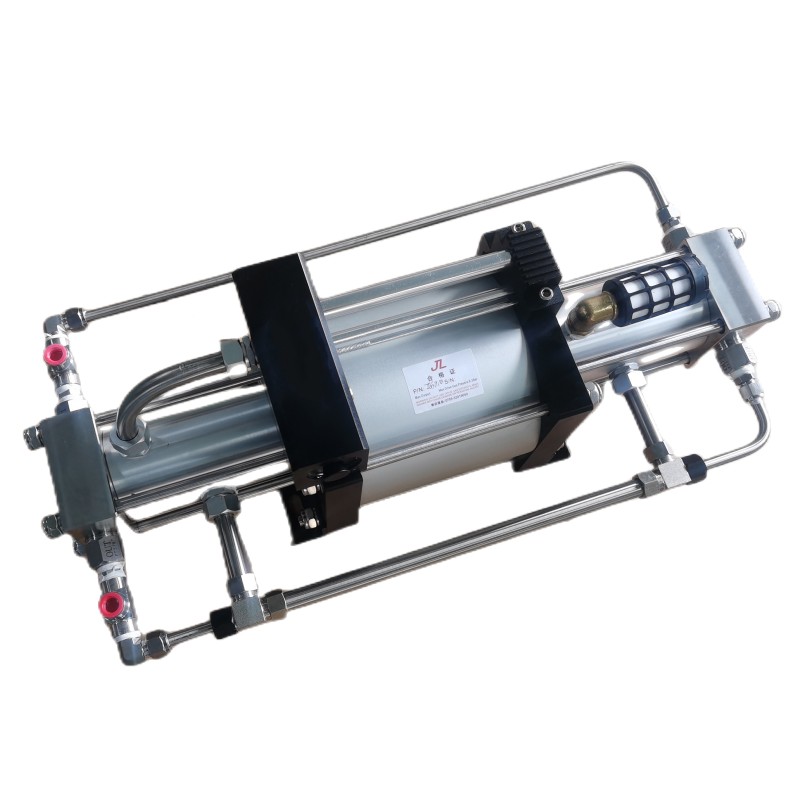 JGD系列相較于JG系列氣體增壓泵,前者雙頭單作用,后者單頭單作用。同樣在具備被增壓介質(zhì)初始?xì)鈮狠^高的條件下,區(qū)別在于JGD系列不光輸出壓力高,輸出流量也更大。同JG系列一樣,JGD系列氣體增壓泵采用普通壓縮空氣驅(qū)動,安全方便,不會產(chǎn)生熱、火星等危險;密封性能好,無油潤滑,導(dǎo)向連接套裝置用于將氣體壓縮缸與空氣驅(qū)動缸分離,保證被壓縮介質(zhì)不被污染及穩(wěn)定壓力的輸出能力。