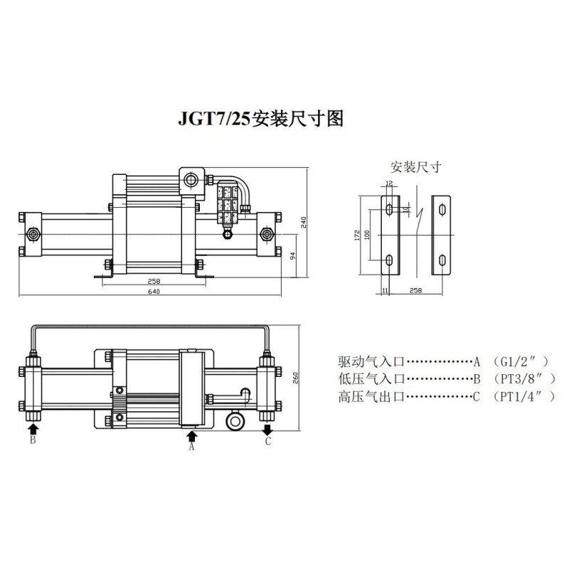 JGT系列為氣體增壓泵,屬于雙頭型雙作用增壓泵,也叫雙頭雙級增壓泵。它是在JG系列的基礎(chǔ)上,增加了一更低壓縮比的高壓腔,主要用于被增壓介質(zhì)初始?xì)鈮狠^低但要求輸出氣體壓力高的場合。