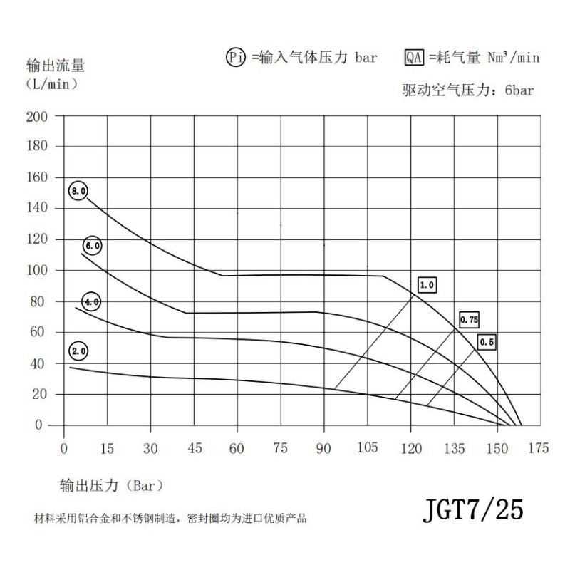 嘉力:技術(shù)參數(shù) Pa=驅(qū)動(dòng)氣壓 Pi=輸入壓力 Po=輸出壓力 (單位:bar) |