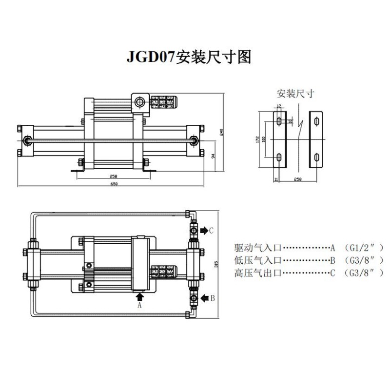 JGD系列為氣體增壓泵,屬于雙頭型單作用增壓泵。它是在JG系列的基礎(chǔ)上增加了一同樣大小的高壓腔,輸出流量更大,穩(wěn)定性更高,結(jié)構(gòu)也更可靠