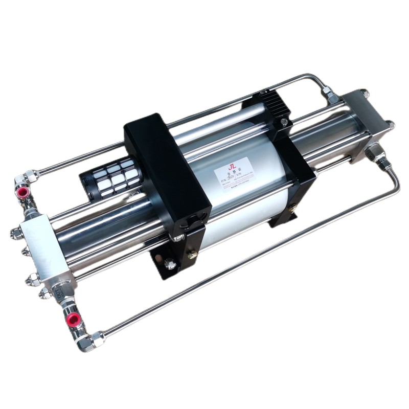 JGD系列相較于JG系列氣體增壓泵,前者雙頭單作用,后者單頭單作用。同樣在具備被增壓介質(zhì)初始?xì)鈮狠^高的條件下,區(qū)別在于JGD系列不光輸出壓力高,輸出流量也更大。同JG系列一樣,JGD系列氣體增壓泵采用普通壓縮空氣驅(qū)動(dòng),安全方便,不會(huì)產(chǎn)生熱、火星等危險(xiǎn);密封性能好,無油潤滑,導(dǎo)向連接套裝置用于將氣體壓縮缸與空氣驅(qū)動(dòng)缸分離,保證被壓縮介質(zhì)不被污染及穩(wěn)定壓力的輸出能力。
