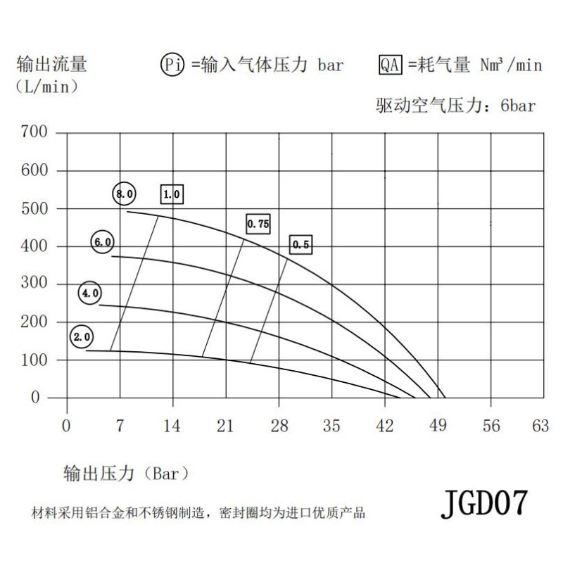 嘉力:技術(shù)參數(shù) Pa=驅(qū)動(dòng)氣壓 Pi=輸入壓力 Po=輸出壓力 (單位:bar) |