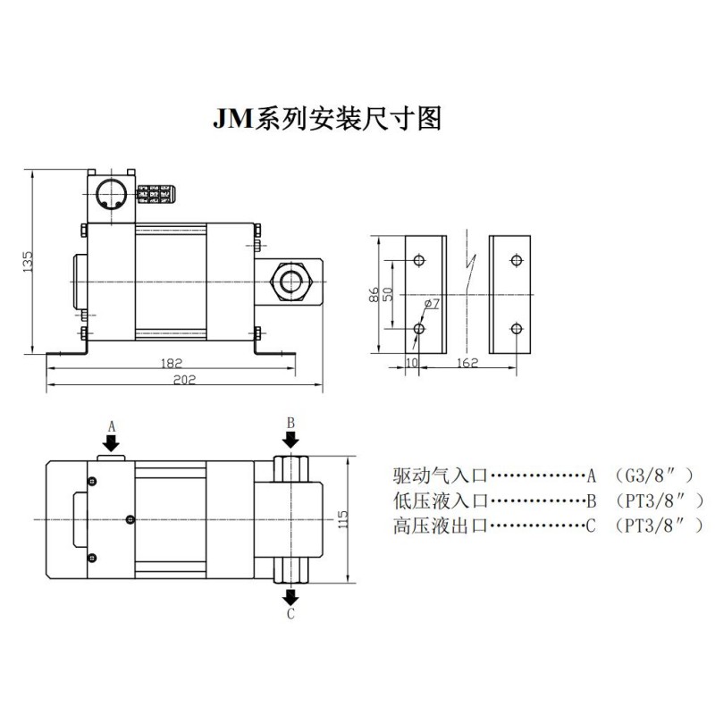 JM16 | 16:1 | 16Pa | 7.6 | 80次/min | G3/8" | PT3/8" | PT3/8" |