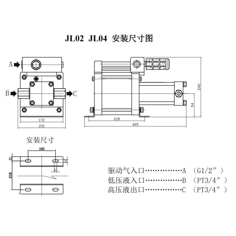 JL04 | 4:1 | 4Pa | 401.9 | 40次/min | G1/2" | PT3/4" | PT3/4" |
