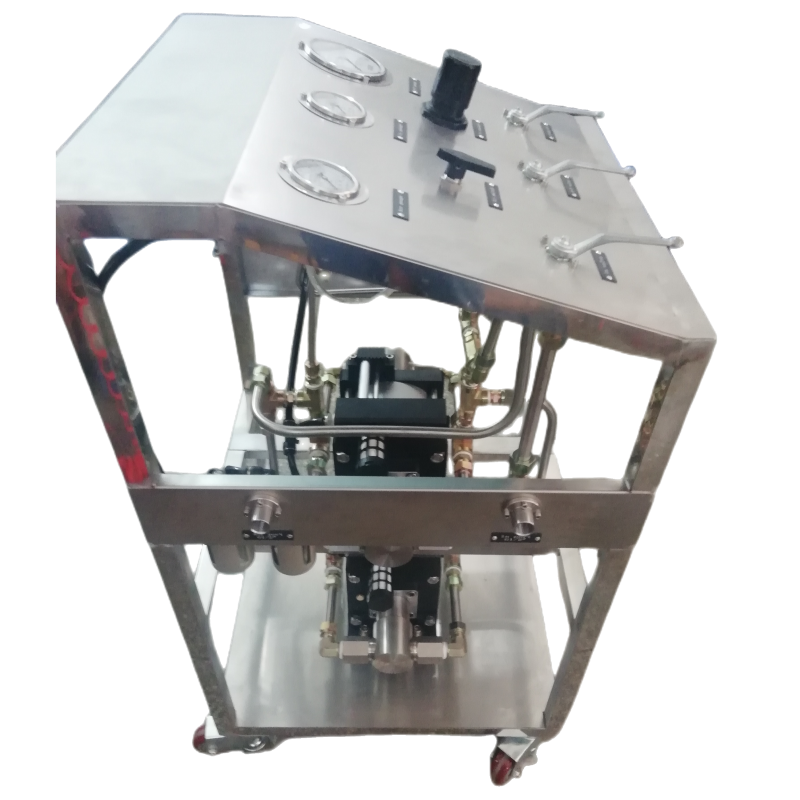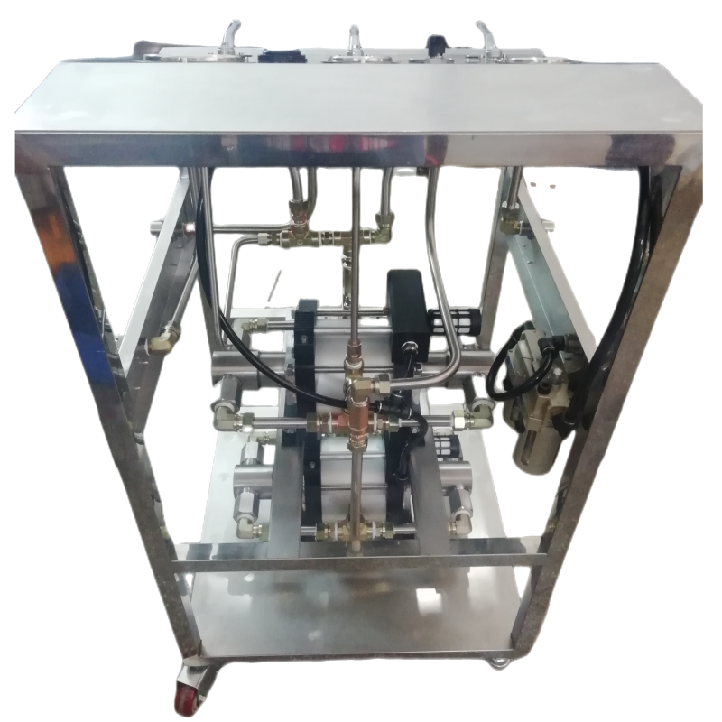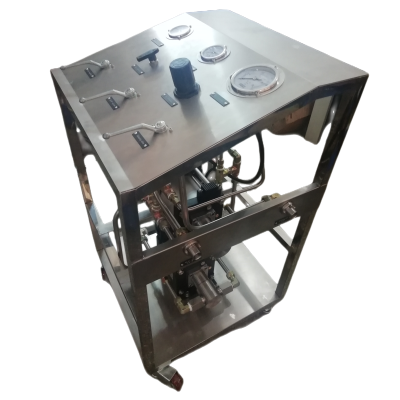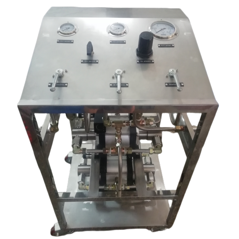 氣動增壓泵,高壓壓力表,手動截止閥,手動卸荷閥,進口過濾器,空氣三聯(lián)件,氣源開關(guān)。